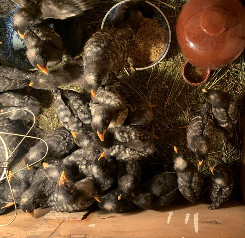 | 3月1日生まれの横斑プリマスロック ヒナを販売します。ご希望の羽数をご購入ください。発送はできません。丸子農園で直接お引き取りください。現在の在庫数はメス50羽、オス5羽です。 |