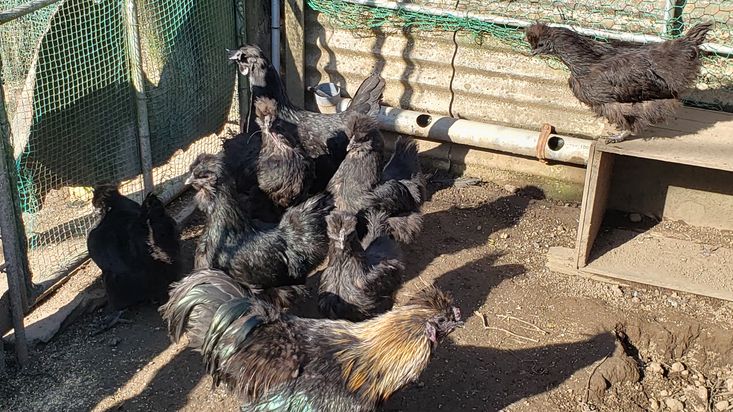 | 黒烏骨鶏の有精卵です。雄1,雌7で飼育しています。画像にて判断お願いします。ご理解の上御入札お願い致します。採卵した卵は無洗浄なので、食べる場合は卵をよく洗い、加熱処理して食べて下さい産まれたから5日以内のものをお送りしますので、あえて日付は記載しません。ご理解の上御入札お願い致します。 |